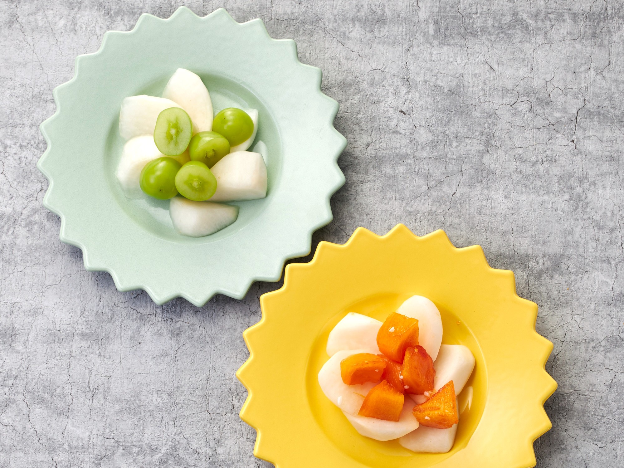 瑞々しい大根の白にシャインマスカットの鮮やかなグリーンが宝石のように映え、ホームパーティやお手土産にも大好評の一品です。