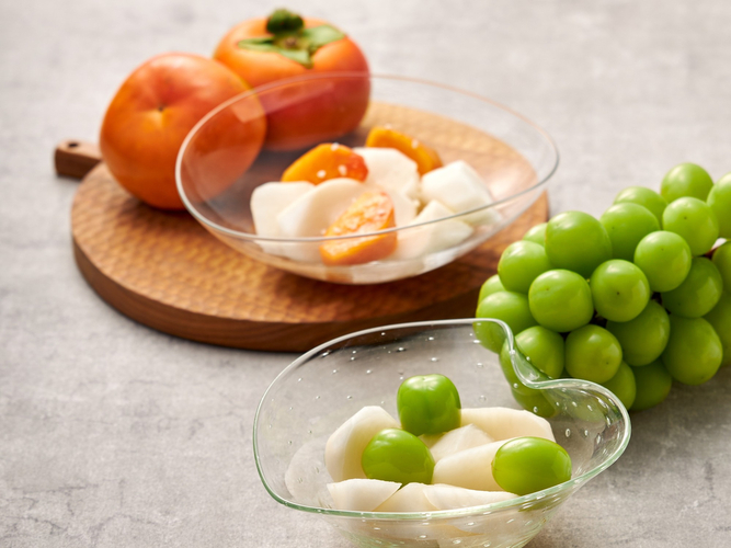 葡萄のしずく(9月~10月上旬)/なごり柿(10月~12月)/柚子うらら(1月~3月)/甘夏ほのか(4月~7月)/青梅さらさ(6月)/檸檬さやか(7月)/酢橘かおる(8月)