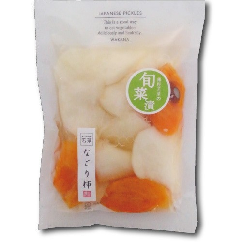 シリーズの元祖にして、不動の人気No.1の「なごり柿」。皮付き大根と旬の柿を、糀を使ってすっきりした甘酢漬けに仕立てています。