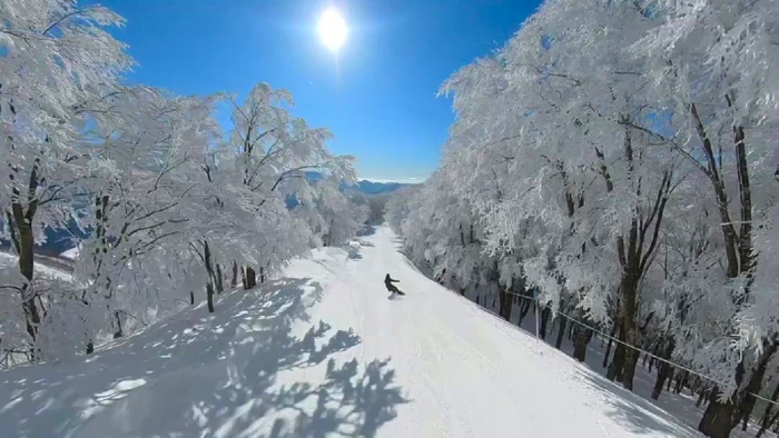 林中を滑るスリル満点の超上級者向け不整地コース。ありのままの冬山を体験出来る反面、ツリーエリア(自己責任エリア)には様々な印の無い危険が存在します。