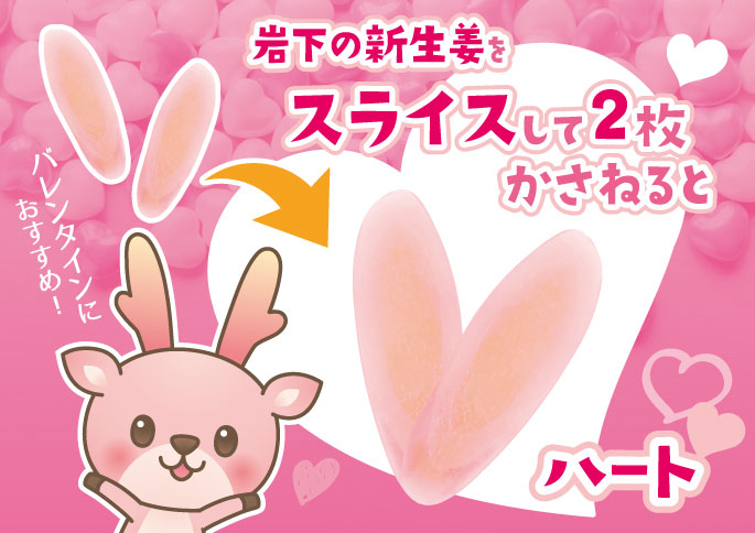 「岩下の新生姜ハート」でLOVEを伝える、ピンクとハートでかわいらしさいっぱいのバレンタインイベントをどうぞお楽しみください。