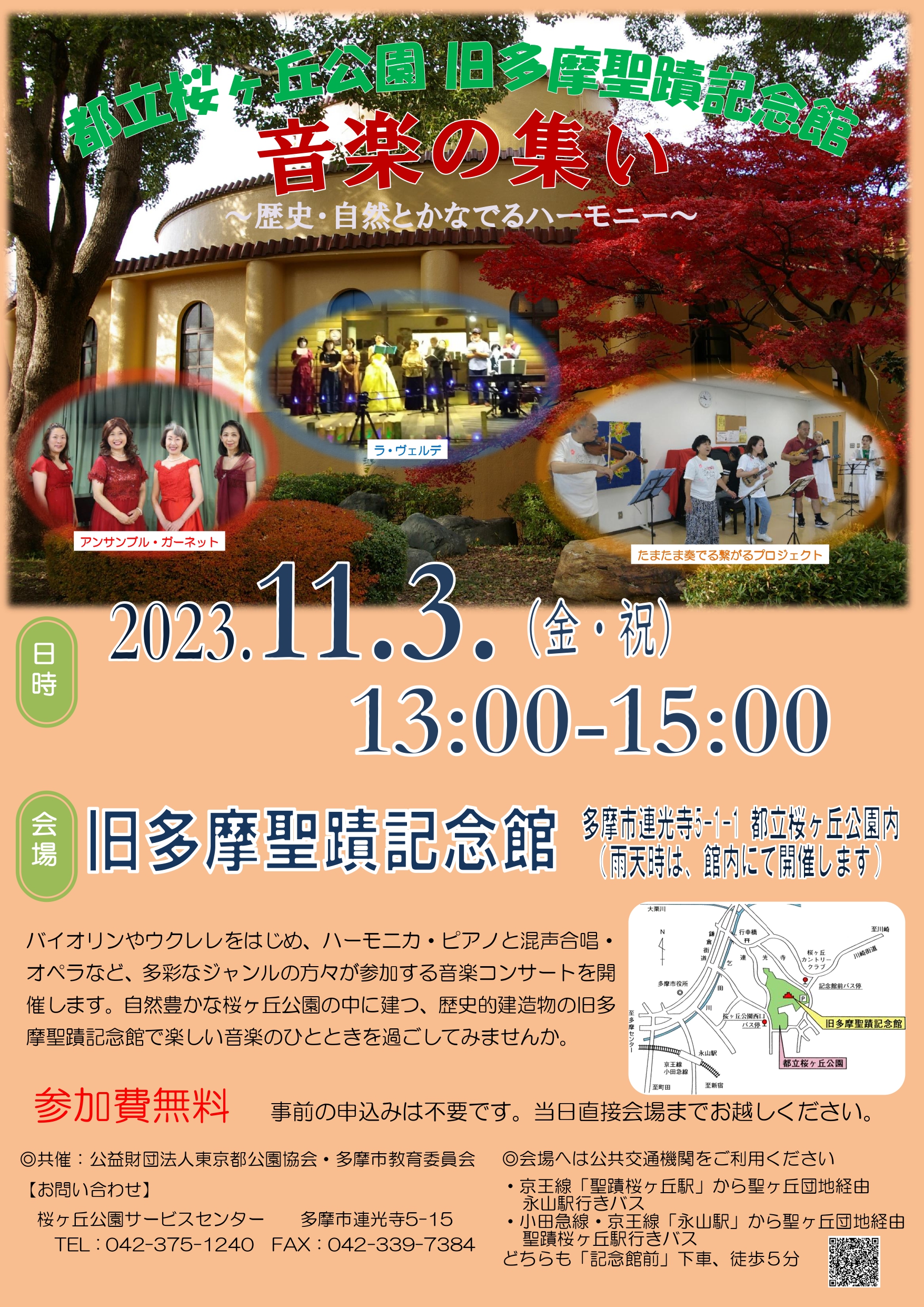 11月3日開催!都立桜ヶ丘公園×旧多摩聖蹟記念館 音楽の集い ~歴史・自然とかなでるハーモニー~
