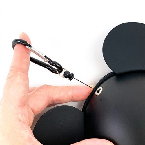 こちらもカラビナ付きで簡単取り付けです。さきほどのキー&コインケースと違う点としては、カラビナ自体にリールが付いているのでパスケースを伸ばしてそのままピッと改札を通れます♪