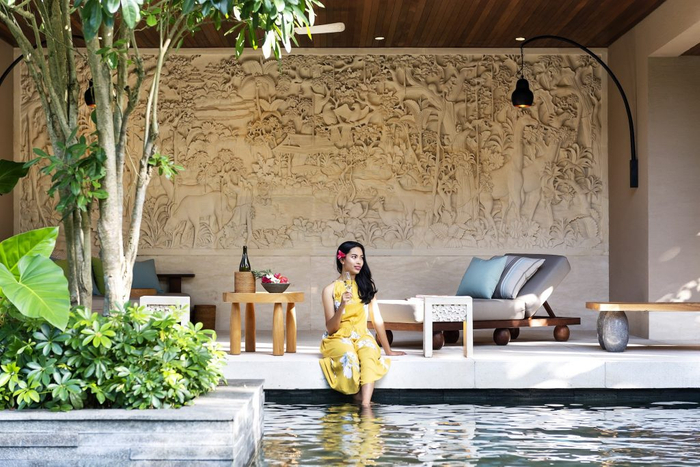 バリでは一日に何度も水浴びをして清潔さを保つ習慣があり、村の各地に水浴場があります。星のやバリでは各ヴィラから、熱帯の樹々が茂るロングプールに直接入れるため、好きな時にいつでも楽しめます。ヴィラのプールサイドリビングやビーチチェアを設えたスペースでは、心地よい風を感じながら読書や昼寝などをしてのんびり過ごすこともおすすめです。