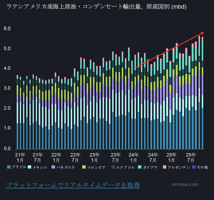 2025年、アメリカ大陸からの海上原油輸出は拡大を続けました。