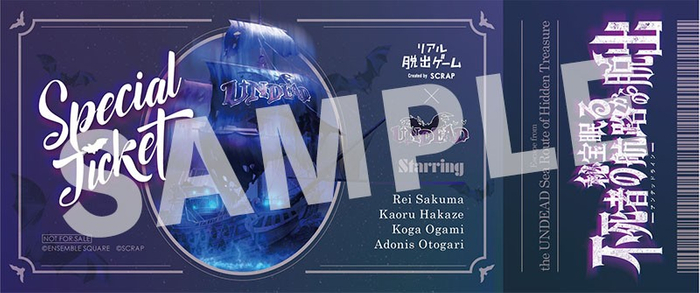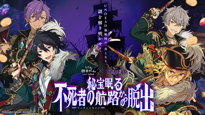 全世界で累計1,500万人以上を動員しているリアル脱出ゲームを企画制作する株式会社SCRAP(本社:東京都渋谷区、代表:加藤隆生)は、『ENSEMBLE SQUARE(アンサンブルスクエア)』に所属の人気アイドルユニット『UNDEAD』と制作したリアル脱出ゲーム『秘宝眠る不死者の航路(アンデッドライン)からの脱出』の大好評を受け、新宿 東京ミステリーサーカスでの開催を発表いたします。