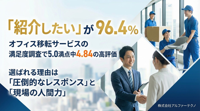 「紹介したい」が96.4%――オフィス移転サービスの満足度調査で4.84の高評価。選ばれる理由は「圧倒的なレスポンス」と「現場の人間力」