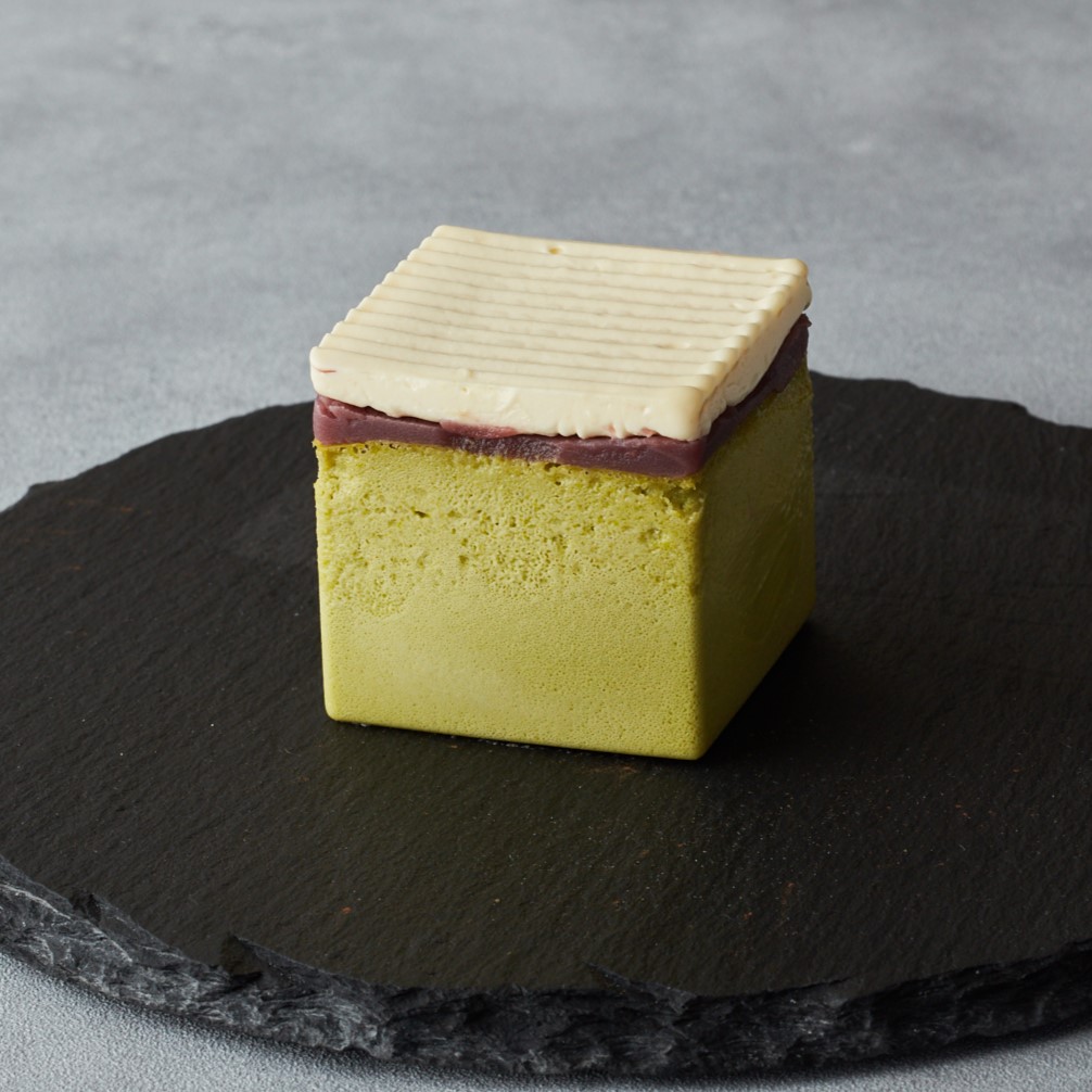 京都宇治の抹茶を使用し、京都らしい色・香り・味を表現しております。色鮮やか青柳色、抹茶の香り、餡子とバターの甘みとコク…チーズケーキに調和し、奥深い味わいに仕上げております。