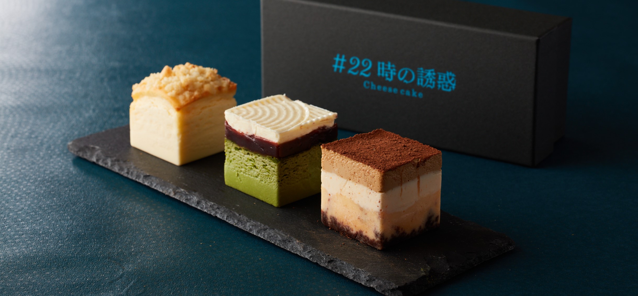 #22時の誘惑チーズケーキをキューブ型にして、3種の詰め合わせにいたしました。