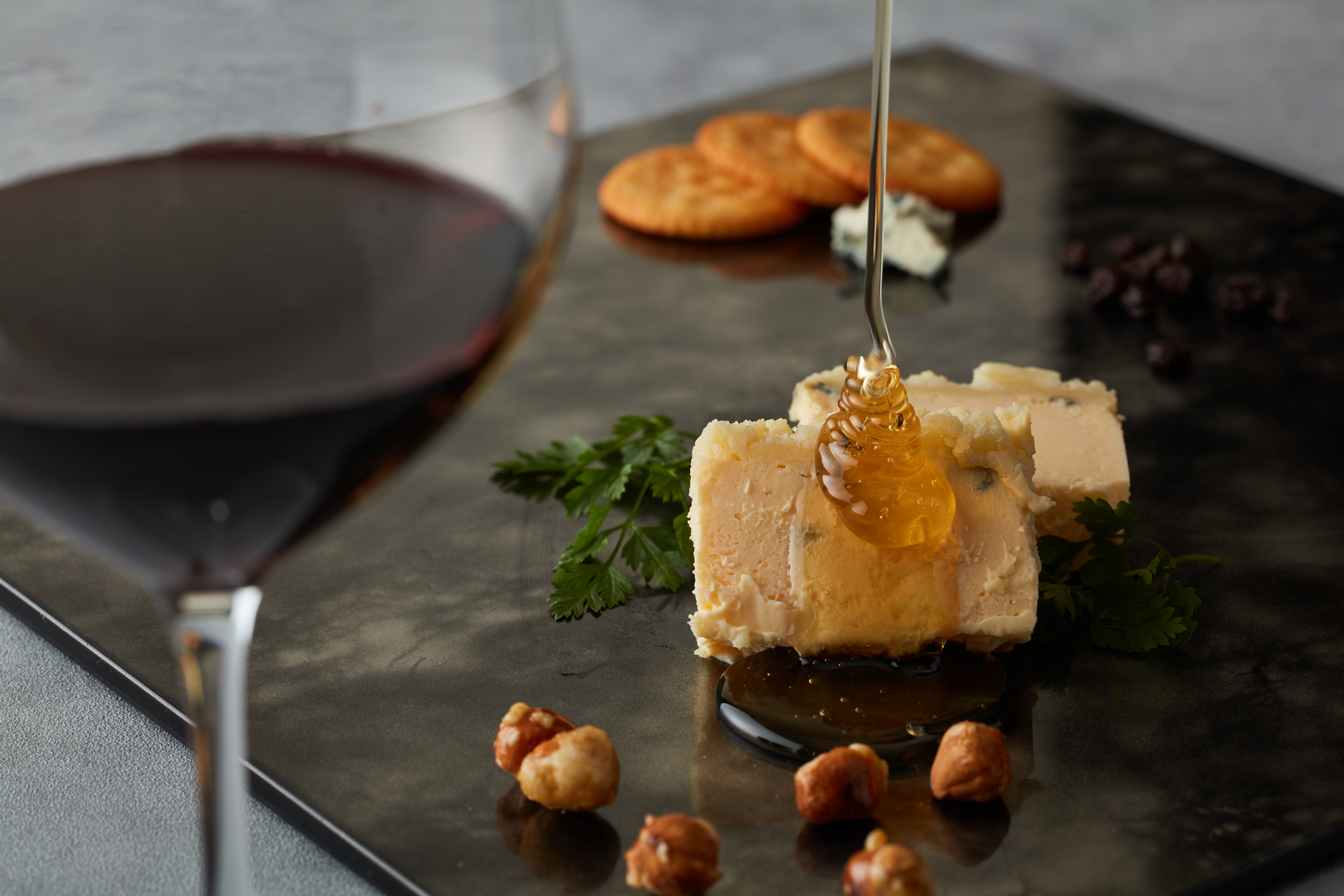 「#22時の誘惑 ブルーチーズケーキ~Bella~」は、東京都町田市の小川ファームの香り高く濃厚な「町田のはちみつ」を。