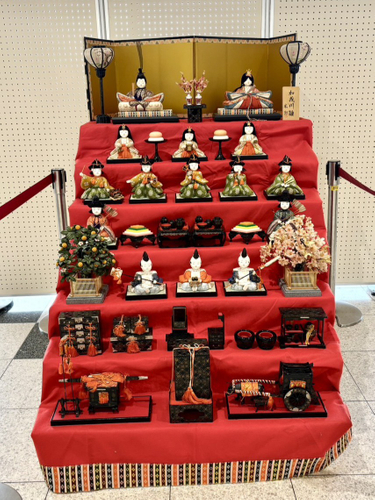 那須塩原駅新幹線改札内にて人間国宝 原米州の雛人形(七段飾り)を展示しております。