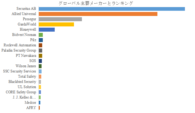 LP Informationのトップ企業研究センターによると、工場向けセキュリティサービスの世界的な主要製造業者には、Securitas AB、Allied Universal、Prosegur、GardaWorld、Honeywell、Bidvest Noonan、Pilz、Rockwell Automation、Paladin Security Group、PT Nawakaraなどが含まれている。2024年、世界のトップ5企業は売上の観点から約58.0%の市場シェアを持っていた。