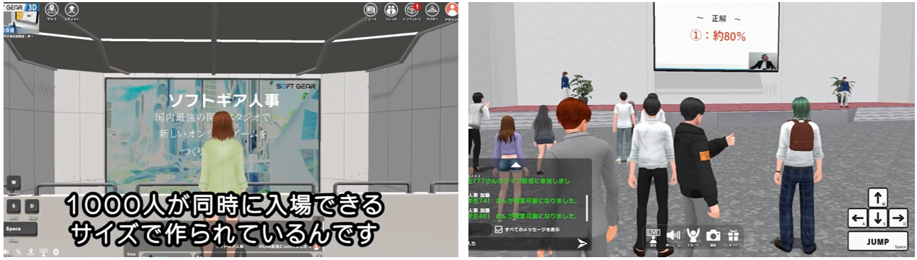 技術特許と100項目以上の独自技術を有し、大人数が同時接続しても安定稼働できる高負荷分散システムにより、メタバース上での大規模な採用イベントや説明会の実現を可能にします。