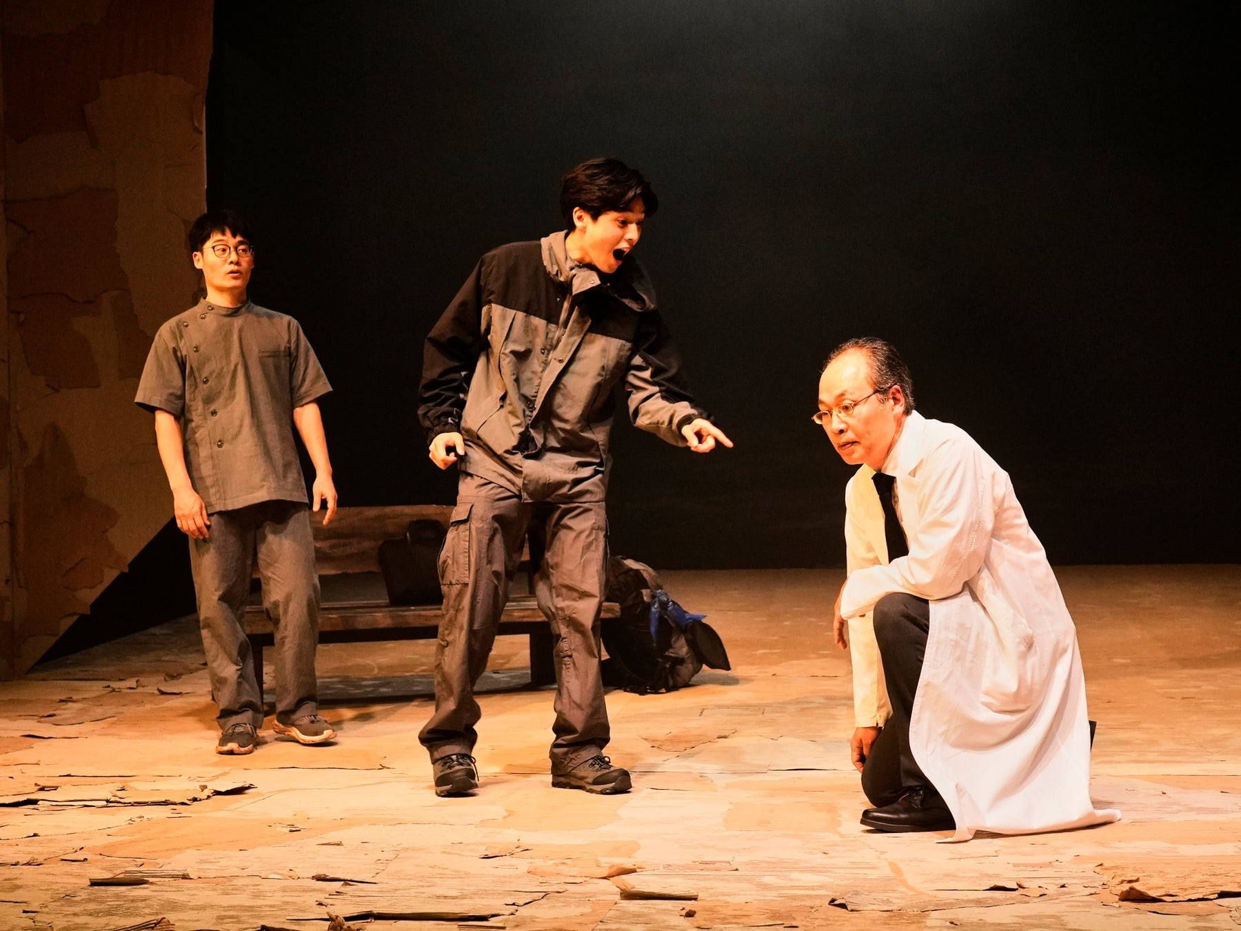 立場や事情の異なる人々の葛藤を対話中心に描き出す作劇に定評のある横山拓也と、公共劇場から商業演劇まで幅広く活動し今最も勢いのある劇作家・演出家のうちの一人である瀬戸山美咲。この二人の強力タッグによる『う蝕』。坂東龍汰、近藤公園、綱啓永、正名僕蔵、新納慎也、相島一之 の6名が、被災した島で遺体の身元確認のため集められた歯科医師たちをめぐる不条理劇を創出。