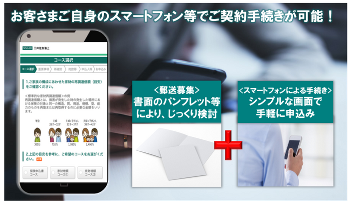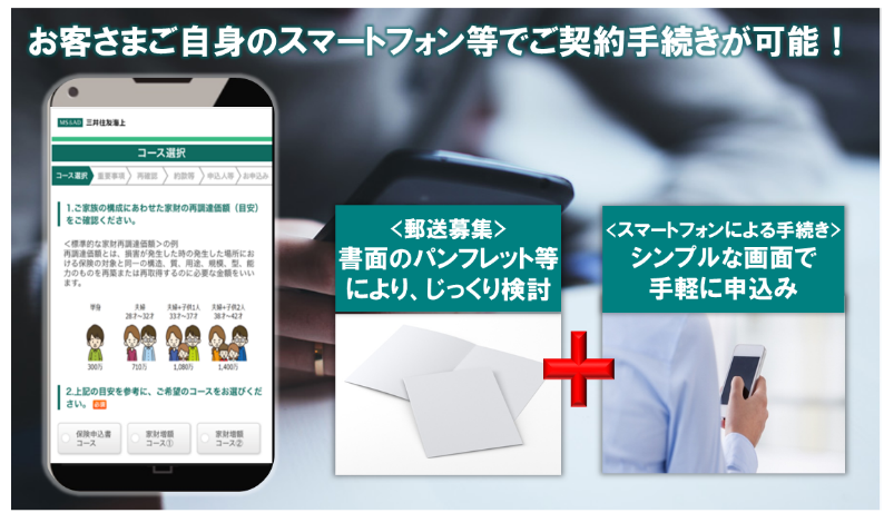 三井住友海上が提供する、お客さまが紙の保険申込書を参照しながら、ご自身のスマートフォン等で契約手続きを行うシステムです。