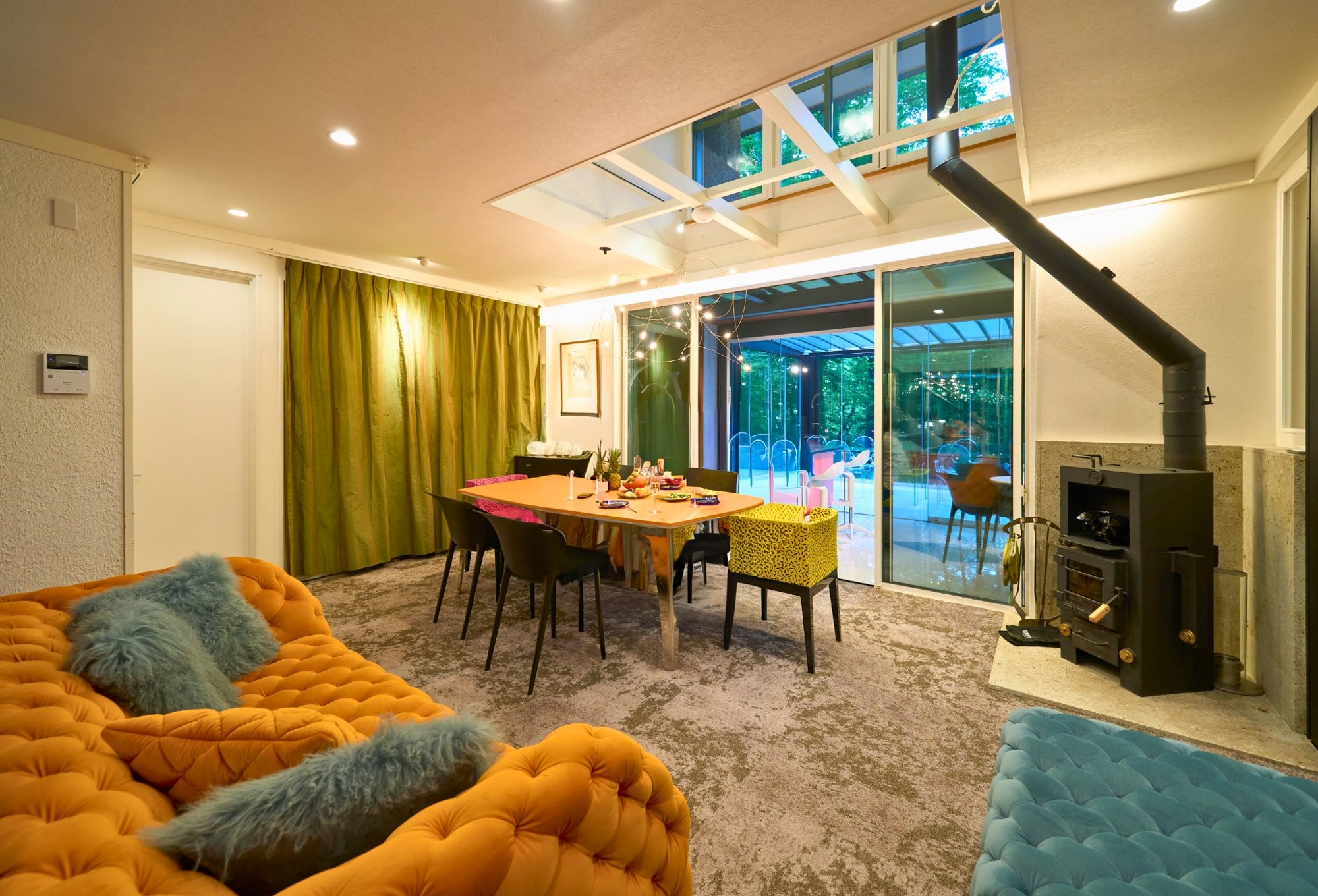 当施設は、箱根の高原リゾート仙石原の静かな森に佇む一棟貸別荘で、「Kunsthaus(クンストハウス)」とはドイツ語で「美術館」を意味します。美術館に隣接する立地に似つかわしい、アートのように洗練された現代的デザインの室内は、トーヨーキッチンのシステムキッチンや、イタリアのインテリアブランド「Kartell」の家具や照明を中心に、素材と質感にこだわった上質なインテリアで統一。自然光が注ぐサンルームでは、ご家族やご友人たちとゆったりとした時間をお過ごしいただけます。さらに、箱根の源泉である大涌谷のかけ流し天然温泉の浴室では、窓から森林を眺めながら温泉を楽しむことができます。日常生活を離れ、箱根の自然と温泉を満喫しながらリフレッシュするプライベートな滞在をお楽しみいただけます。
