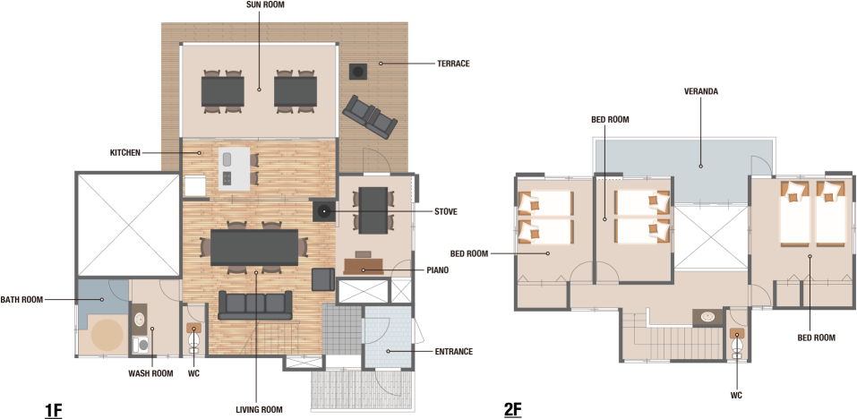 リソル不動産は別荘のシェア利用事業「リソルステイ」を通して、オーナー向けに安心・手間いらずの別荘運営受託サービスを、ご利用者には「暮らすように泊まる。」宿泊サービスを両面で提供しています。オーナーから別荘運営を受託し、貸別荘タイプの宿泊施設「スイートヴィラ」として運営・維持管理をサポート。許認可取得支援などの「開業準備」から、宿泊者の集客に向けた「マーケティング・情報発信」、清掃や24時間緊急事対応等の「施設運営」に至るまで一元管理で提供、オーナーの負担軽減、収益最大化を図ると同時に、宿泊者の満足度向上を実現しています。