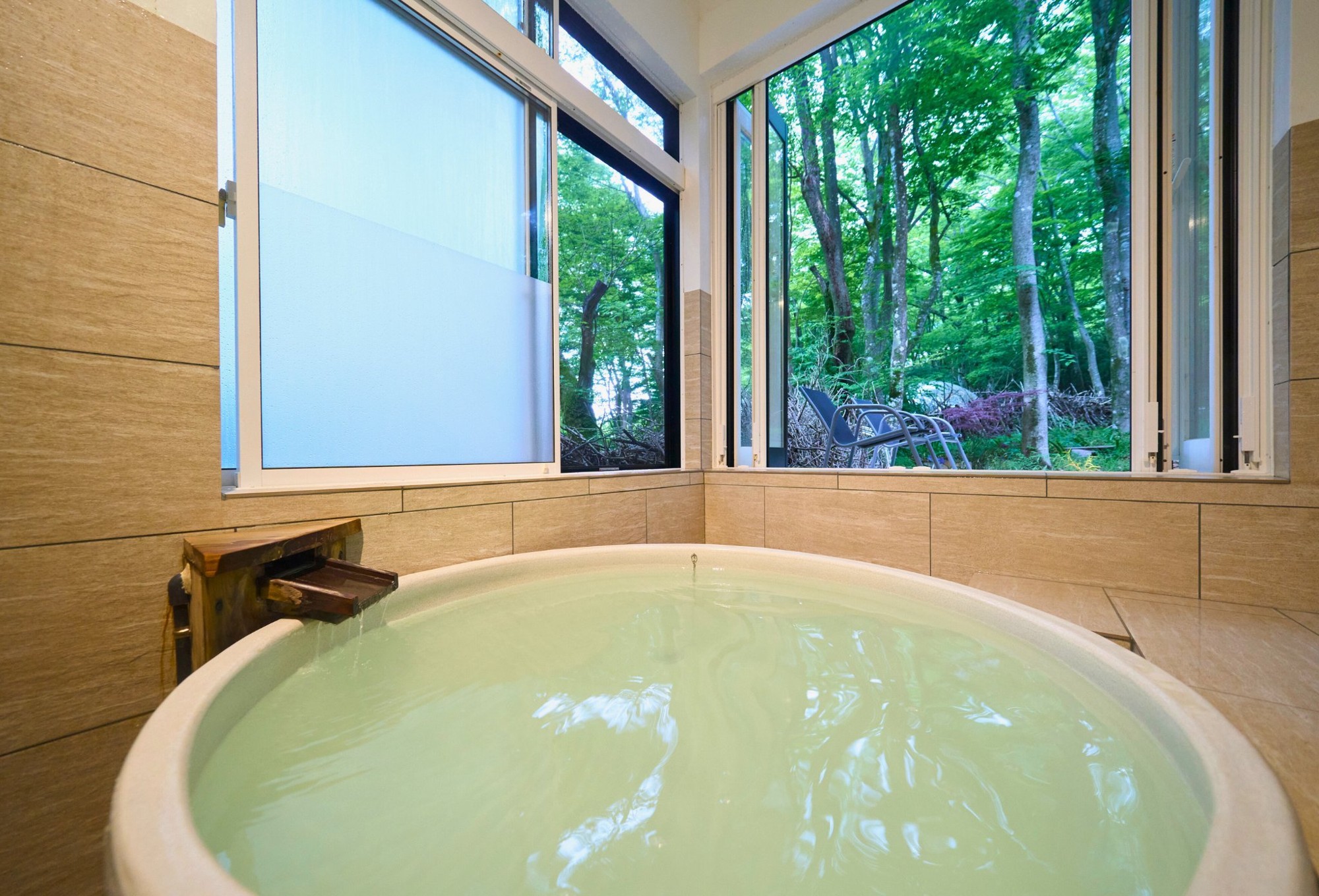 隣接するポーラ美術館の芸術的な空気を映すように、こだわりのインテリアと自然光が織りなす空間が広がります。築年数を重ねた建物だからこそ漂う落ち着きと趣き。そこに現代的なデザインと快適さを融合させた、大人のための隠れ家です。大涌谷の源泉に最も近い、かけ流しの天然温泉を24時間好きなだけ。ご家族やご友人と、最大6名まで一緒に過ごせるプライベートな邸宅で、特別なひとときをお楽しみください。