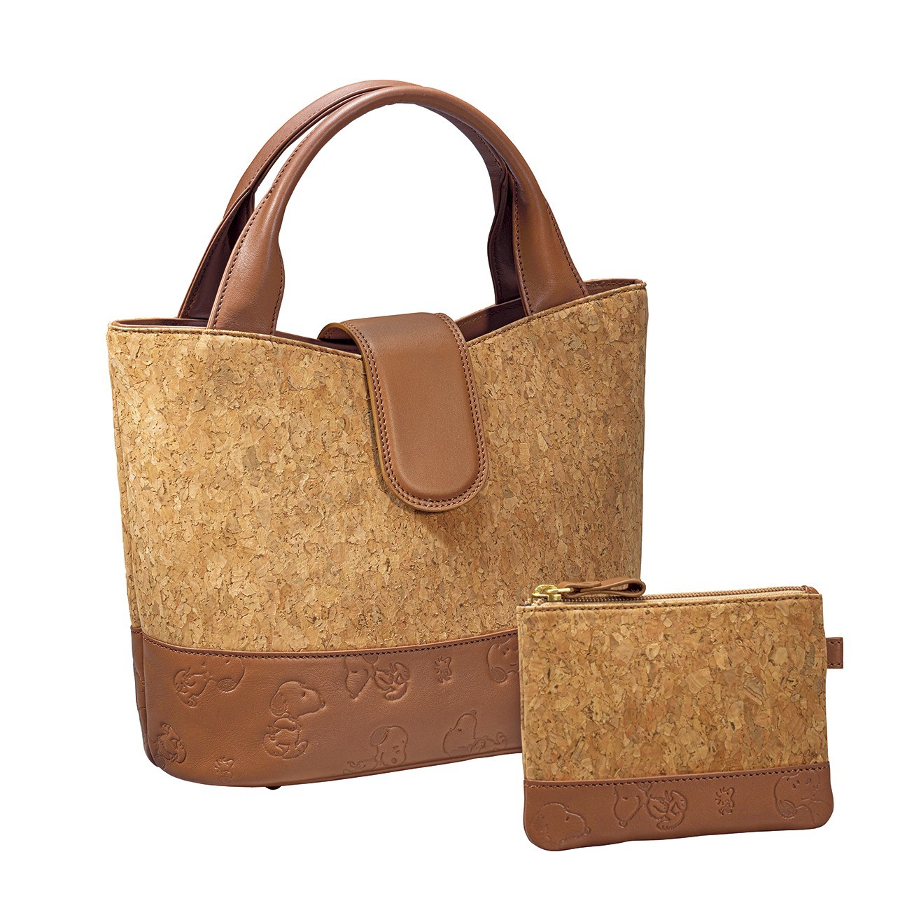 「スヌーピーのナチュラルコルクトート」新発売! ナチュラルなコルク素材と、牛革のコンビのタウントートです。