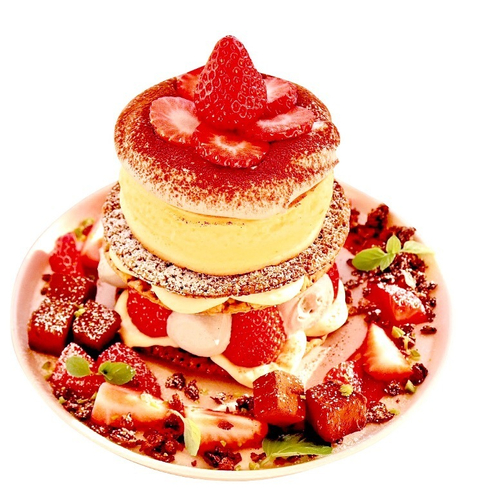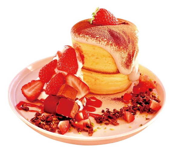 TAMAGOYA自慢のふわふわパンケーキを、定番人気のイチゴのショートケーキ風にアレンジしました!スポンジ生地よりもふんわり軽いパンケーキに、バレンタイン限定でホワイトチョコクランチをトッピングし、生クリームと新鮮なイチゴを合わせました。誰もが納得する王道の美味しさをご堪能ください。