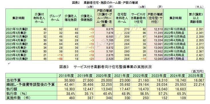 ・2025年に入り、サービス付き高齢者向け住宅及びグループホームの増加が頭打ち。