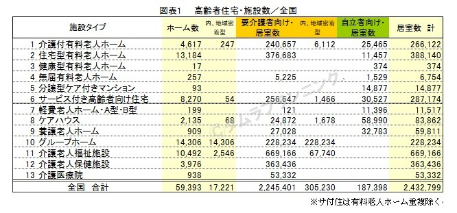 ・全国の高齢者住宅のホーム数/戸数は5.9万ヶ所/243.3万戸。