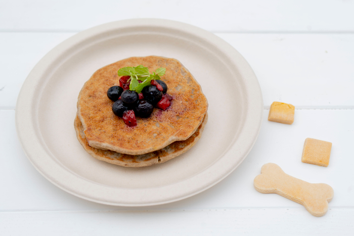 同日15日より、バターや小麦粉、砂糖を使用せず、淡路島産米粉を使用したわんちゃん専用のパンケーキが新登場。砂糖ではなく、バナナを使用することで優しい甘さが口いっぱいに広がり、もちもち食感をお楽しみいただけます。Sサイズ(1枚)550円、Mサイズ(2枚)650円、Lサイズ(3枚)750円の3つの種類で提供。愛犬と共に播磨灘の景色を見ながら、至福のひと時をご堪能ください。