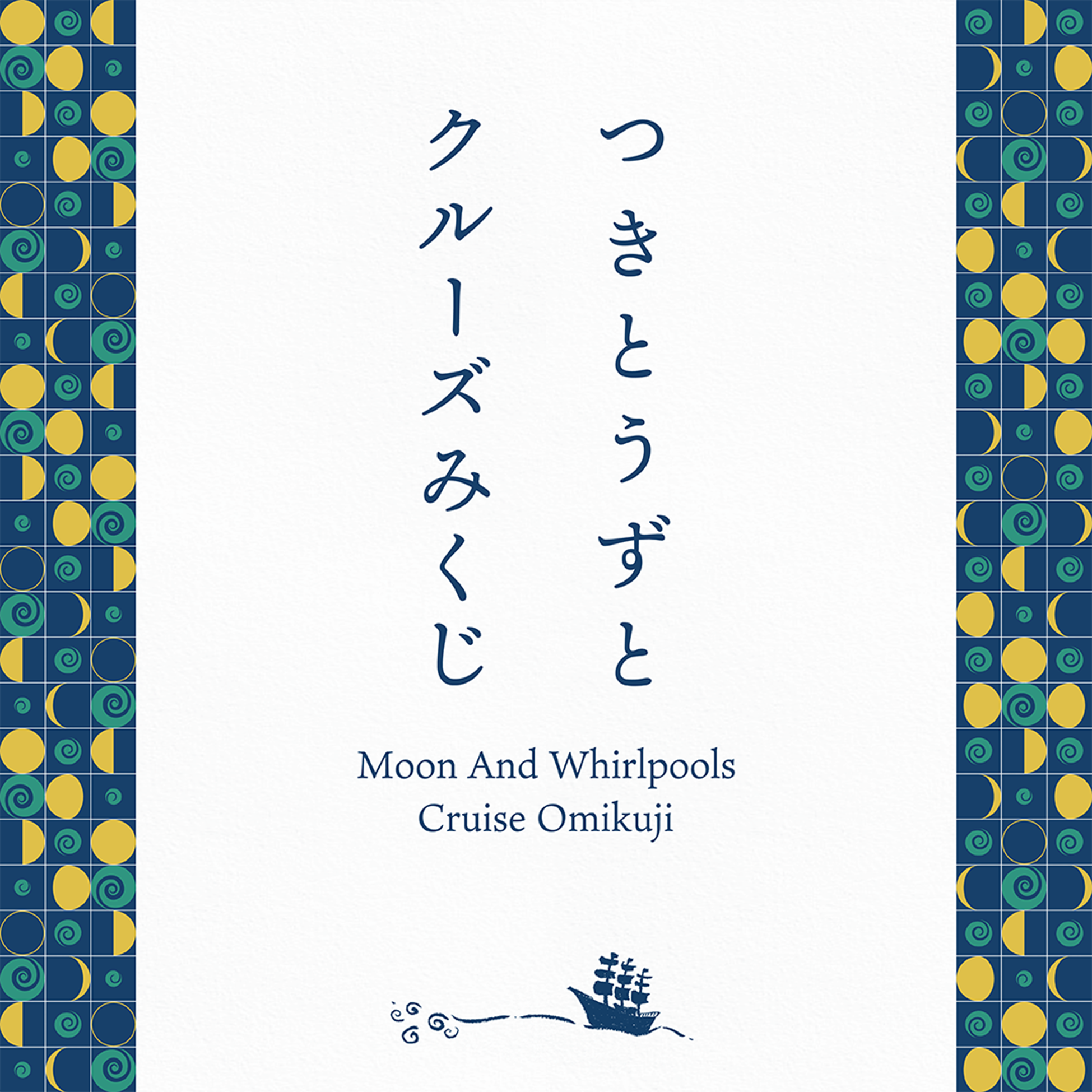 鳴門海峡のうずしおには、地元の伝承に「満月と新月の日にうずしおが大きく巻き、半月の日にうずしおが小さく巻く」という言葉があります。それを月の満ち欠けと、潮の満ち引きの科学的データを元に確認し、事実だったことの驚きをデザインソースとしています。おみくじのデザインには8種類の月の満ち欠けに、その時に合ったうずしおの状態と自然のリズムから感じ取った言葉を綴りました。手に取りやすいおみくじという形で、淡路島ならではの自然のロマンを広く伝えることを目指しました。