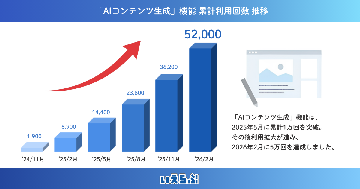 「AIコンテンツ生成」機能の累計利用回数は増加を続けており、リリースから約1年半で5万回を突破しました。