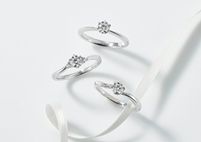 はじめにご購入いただくリングは、多くの方に好まれる「シリウス」「フラネリー」「ヴィオラ」からお選びいただき、プラチナ製でご用意します。中央に留めるダイヤモンドとご一緒にお選びください。