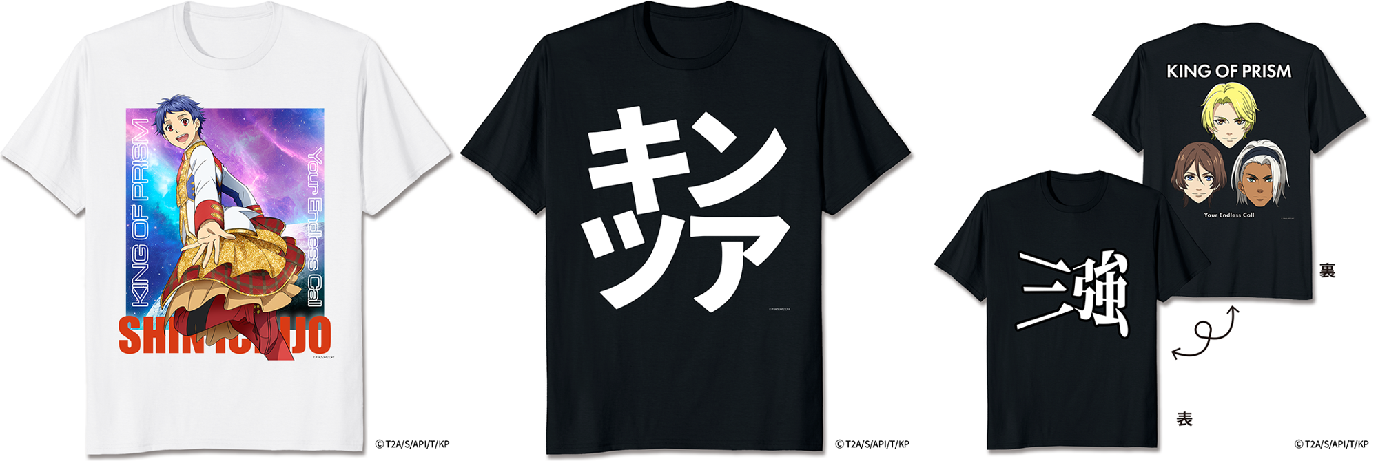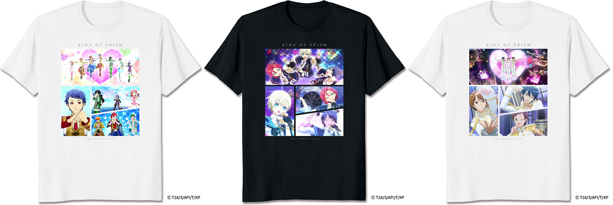 9月8日より、現在上映中の劇場版アニメ『KING OF PRISM-Your Endless Call-み~んなきらめけ!プリズム☆ツアーズ』の場面写真を使用した新デザインTシャツを新たにラインナップに追加いたしました。劇場での感動を日常でもお楽しみいただけるアイテムです。