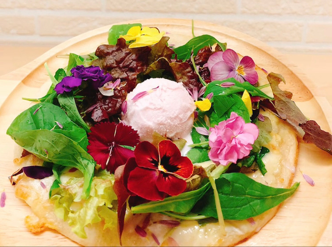 ROSE GALLERY CAFEでは、お花いっぱいのカレーやお花畑のオムライスなど「お花を食す」をコンセプトに全メニューにエディブルフラワーを使用しております。