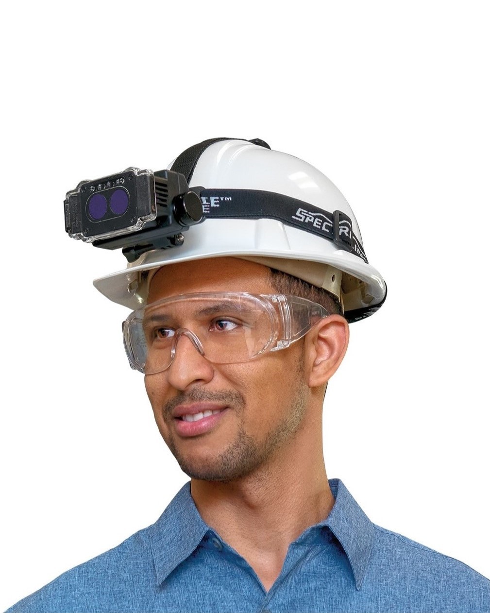 ・ヘルメットに装着しハンズフリーで検査が可能、角度調整機能も搭載