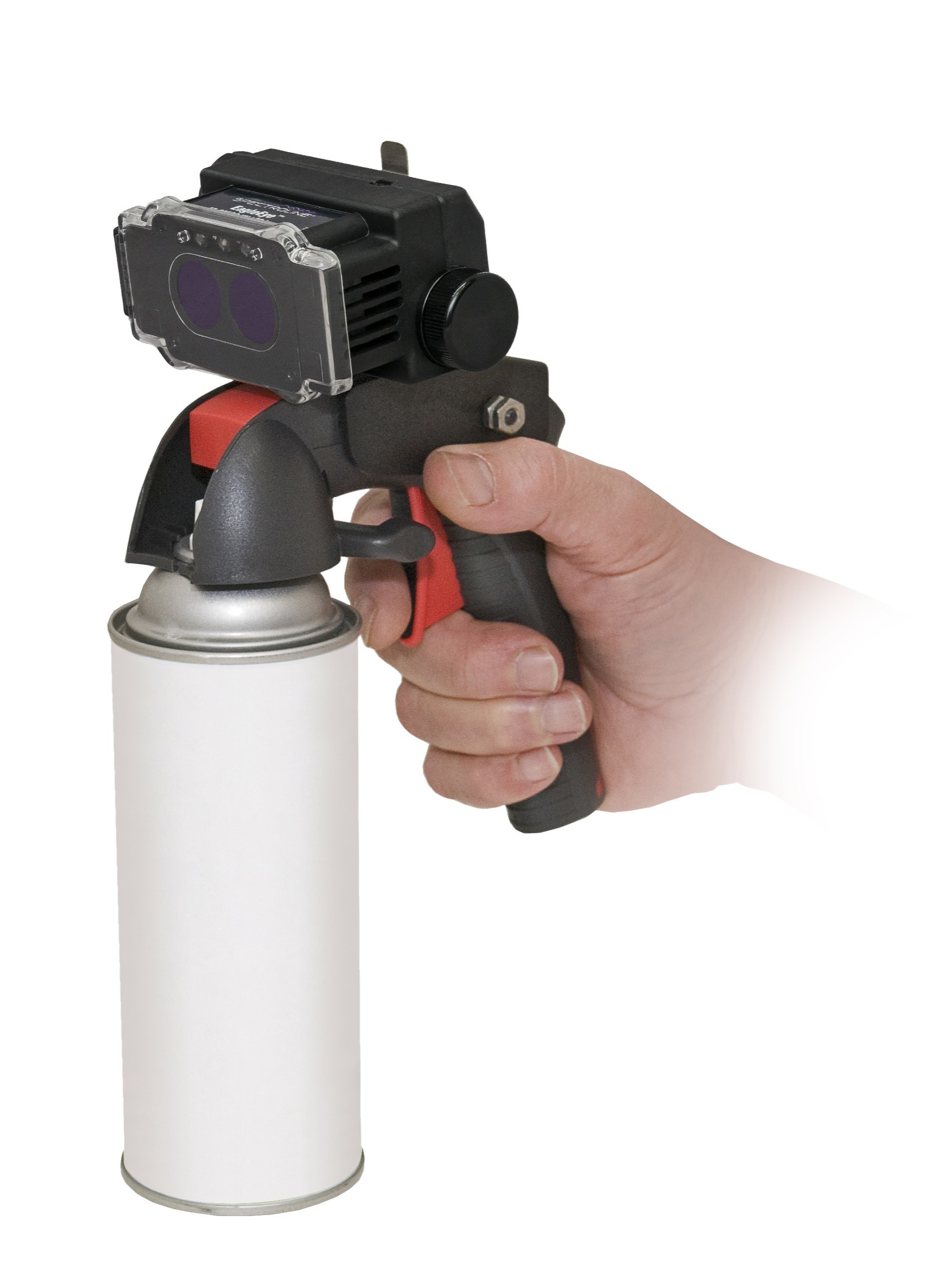・エアゾール(スプレー)缶に装着し、片手で紫外線照射と蛍光磁粉の噴射が可能