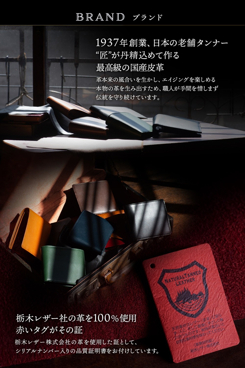 1937年創業の日本の老舗タンナー、栃木レザー株式会社の革のみを使用しています。