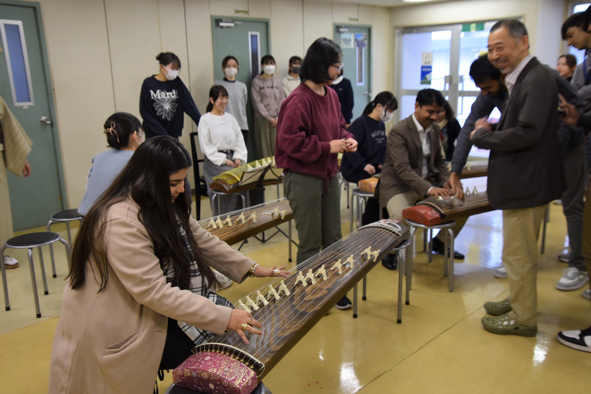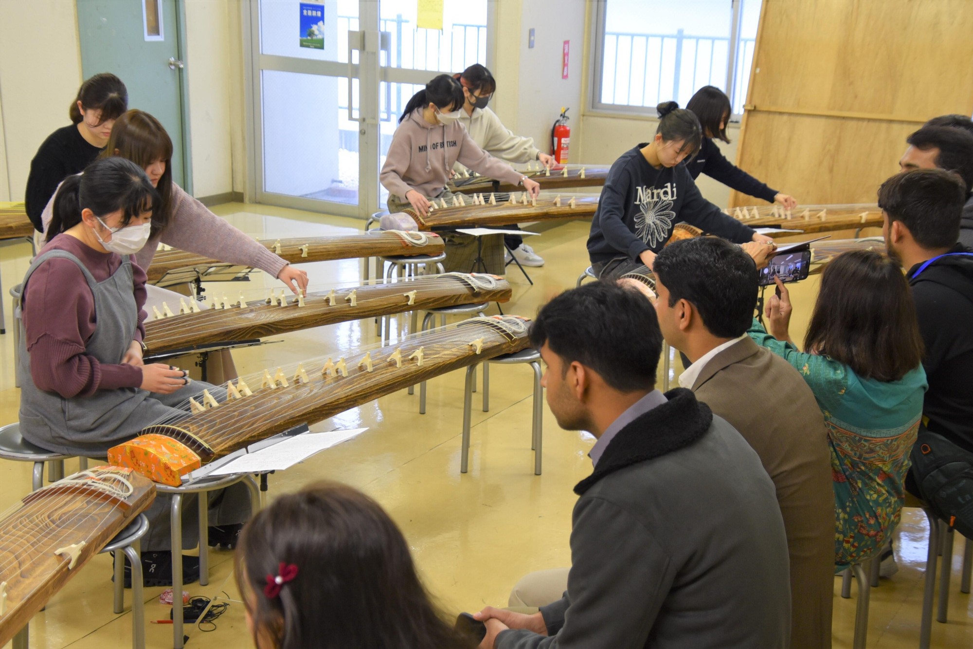 最終日の28日には八事キャンパスの学生会館「城薬ホール」で交流会が行われ、薬学部筝曲部の17人が「さくらさくら」や「あんたがたどこさ」などのメドレー「わらべうたづくし」と「春の海」を華やかに披露すると、パキスタンの学生たちは演奏の様子を動画や写真に収めていました。午後に修了式に臨んで全日程を終え、3月1日に故郷に向けて帰国の途に就きました。
