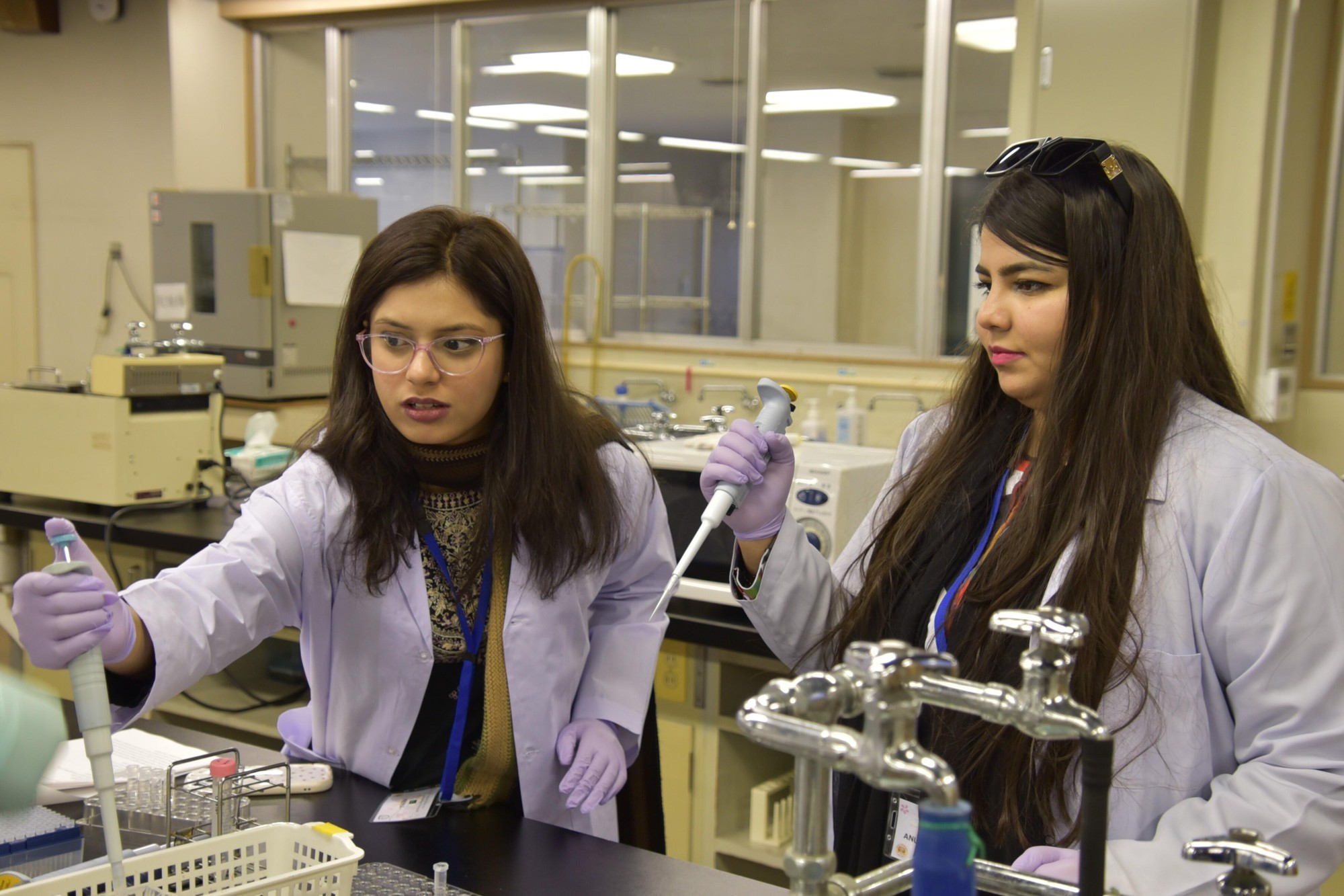 国立研究開発法人科学技術振興機構(JST)の「さくらサイエンスプログラム」(SSP)で招聘されたパキスタンの「シャヒード・モタルマ・ベナジール・ブット(SMBB)医科大学」の医学・薬学を学ぶ4、5年生6人とヌストラ・シャー学長ら引率教員2人が2月25日から28日までの4日間、本学を訪問し、学生たちは生化学の実験などの実習に取り組んだり、本学の薬学部生らと交流を深めたりました。