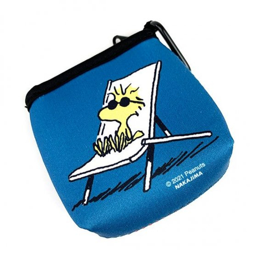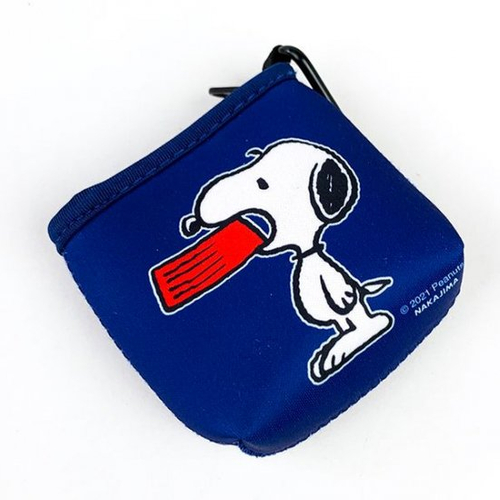 ベーシックなネイビーカラーは、寝そべりポーズのスヌーピーデザインです。ポーチ裏面のプレートをくわえたスヌーピーも、もはやおなじみですよね♪