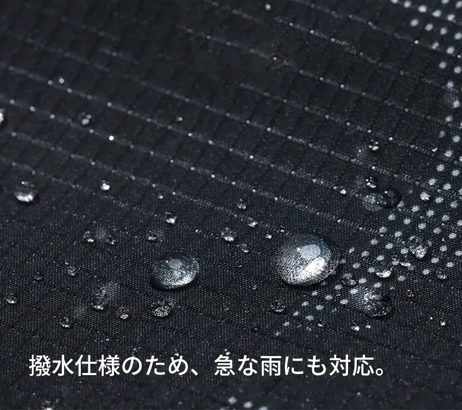 急な雨や雪にも心配なし!軽量でありながら耐摩耗性のあるポリエステル素材を採用し、撥水仕様の為天気を気にせず使いやすい設計。