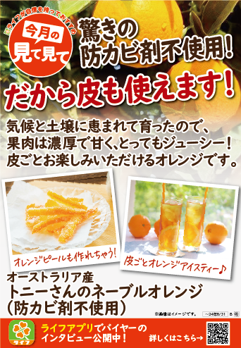 【ライフ】防カビ剤不使用!皮まで使用できる!「トニーさんのネーブルオレンジ(防カビ剤不使用)」新発売