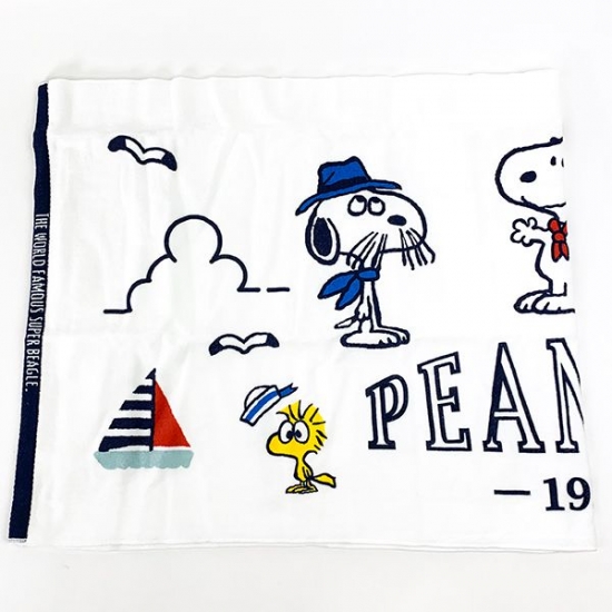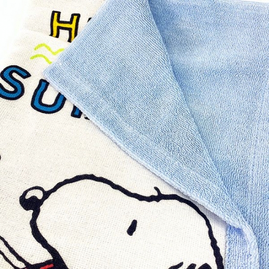 お風呂できれいになった後は、こんなバスタオルで体を包めばリゾート気分♪スヌーピーと仲良しなブラザーズのデザインに、ほっこりします。ビーチパラソルや浮き輪など、リゾート気分満載なモチーフもたくさんデザインされています。