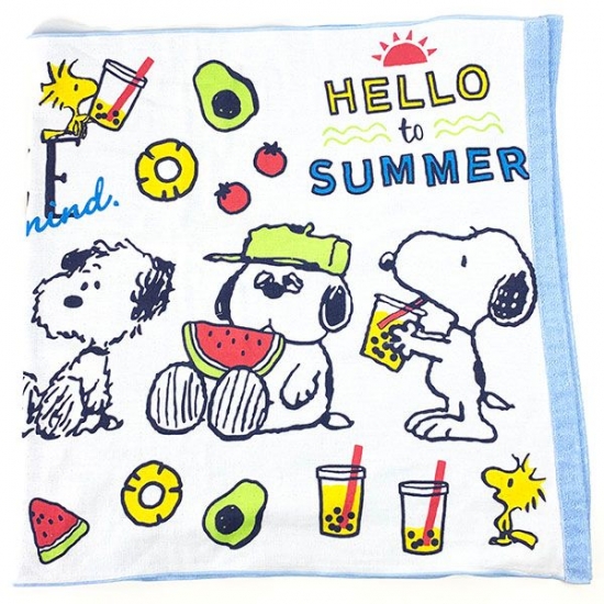スヌーピーの夏らしいデザインが人気のバスタオルの紹介でした。これからの時期にピッタリなデザインで、肌ざわりも抜群です。新しいバスタオルにチェンジしてみませんか?