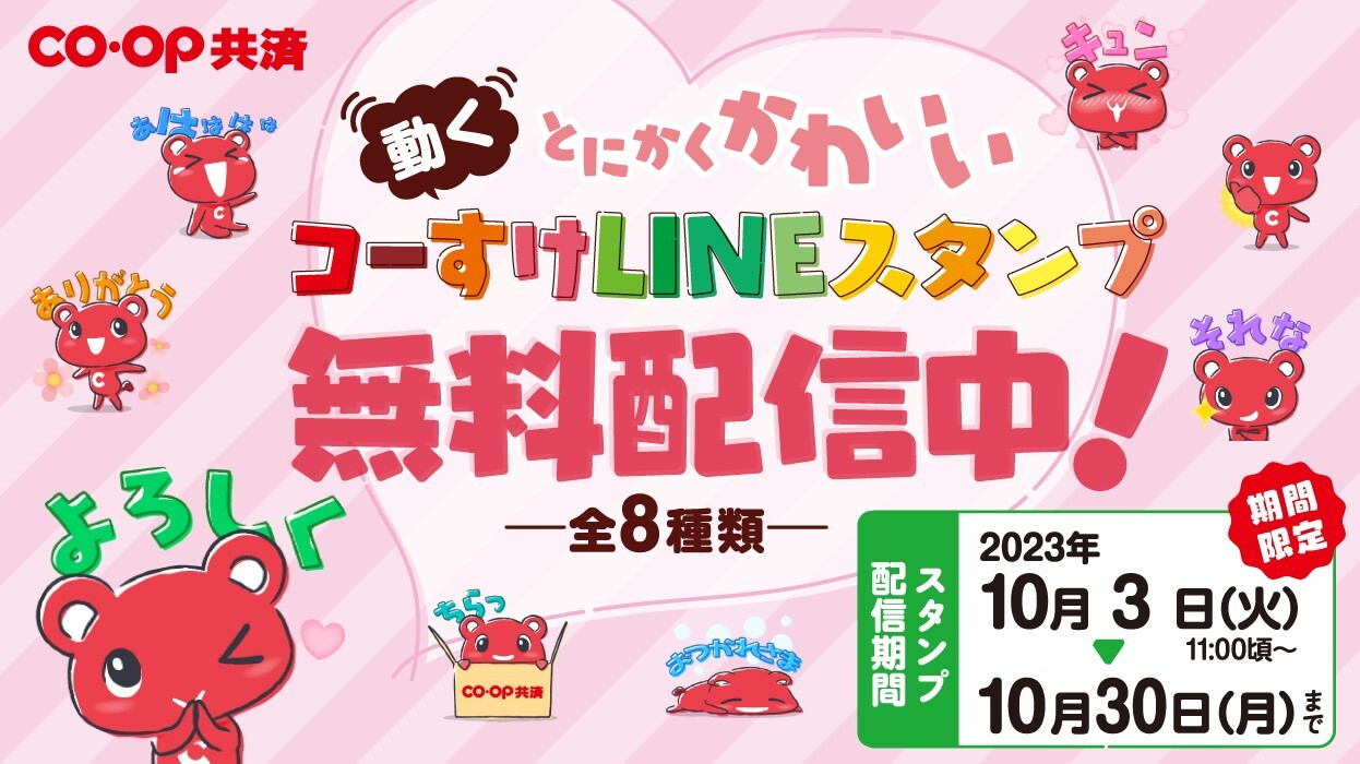 コープ共済連(日本コープ共済生活協同組合連合会、代表理事理事長:和田 寿昭)は、2023年10月3日より、LINEヤフー株式会社が運営するコミュニケーションアプリ「LINE(ライン)」においてCO・OP共済キャラクター「コーすけ」のLINEスタンプを配信中です。