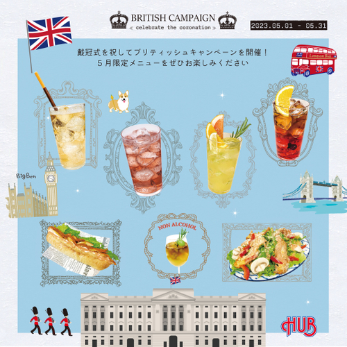 株式会社ハブ(本社:東京都千代田区、代表取締役社長:太田 剛)が運営するHUB・82全店(HUB福岡PayPayドーム店を除く)で、5月に執り行われるイギリス国王の戴冠式を祝したキャンペーンを実施いたします。英国や戴冠式にちなんだメニューを是非店舗にてお楽しみください。