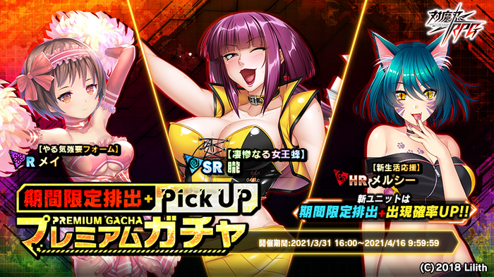 期間中は新規キャラクター「『【凄惨なる女王蜂】朧』『【新生活応援】メルシー』『【やる気強要フォーム】メイ』の出現確率がアップしております。