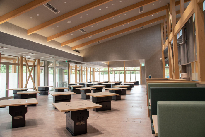 新たにオープンするレストランは、牧場の広大な自然を一望できる開放的な空間で、訪れるすべての方に特別な食体験を提供します。テラス席やパラソル席等約400席を備え、従来の8人掛け1テーブルを、