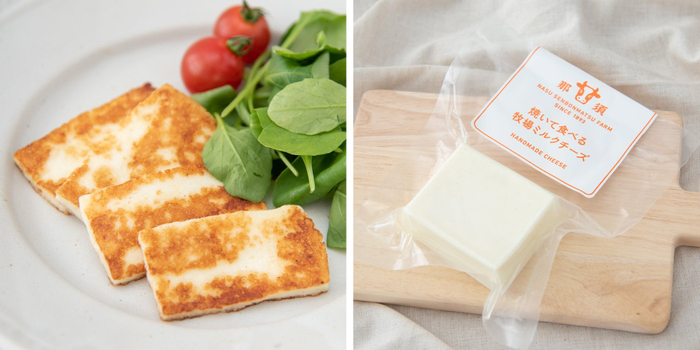 地中海のハロウミチーズをモチーフに、千本松牧場独自の製法で仕上げたこのチーズは、自社牧場の新鮮なミルクを使用し、酸味のない自然な風味が楽しめます。焼いても溶けない独特の食感とミルクの優しい甘さが特徴で、焼いても溶けない、独特の“外はカリッと、中はモキュッと!”食感を楽しむことができ、ミルクの優しい甘さが口いっぱいに広がります。