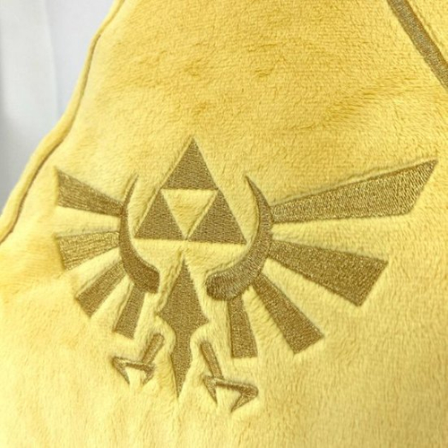 裏面には紋章の刺繍入りで、ゼルダ好きにはたまりませんよね!おうちにあるゼルダのぬいぐるみやフィギュアと一緒に飾って楽しんで、触って楽しんでちょうどいいサイズです。