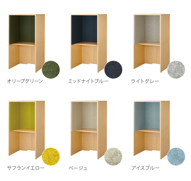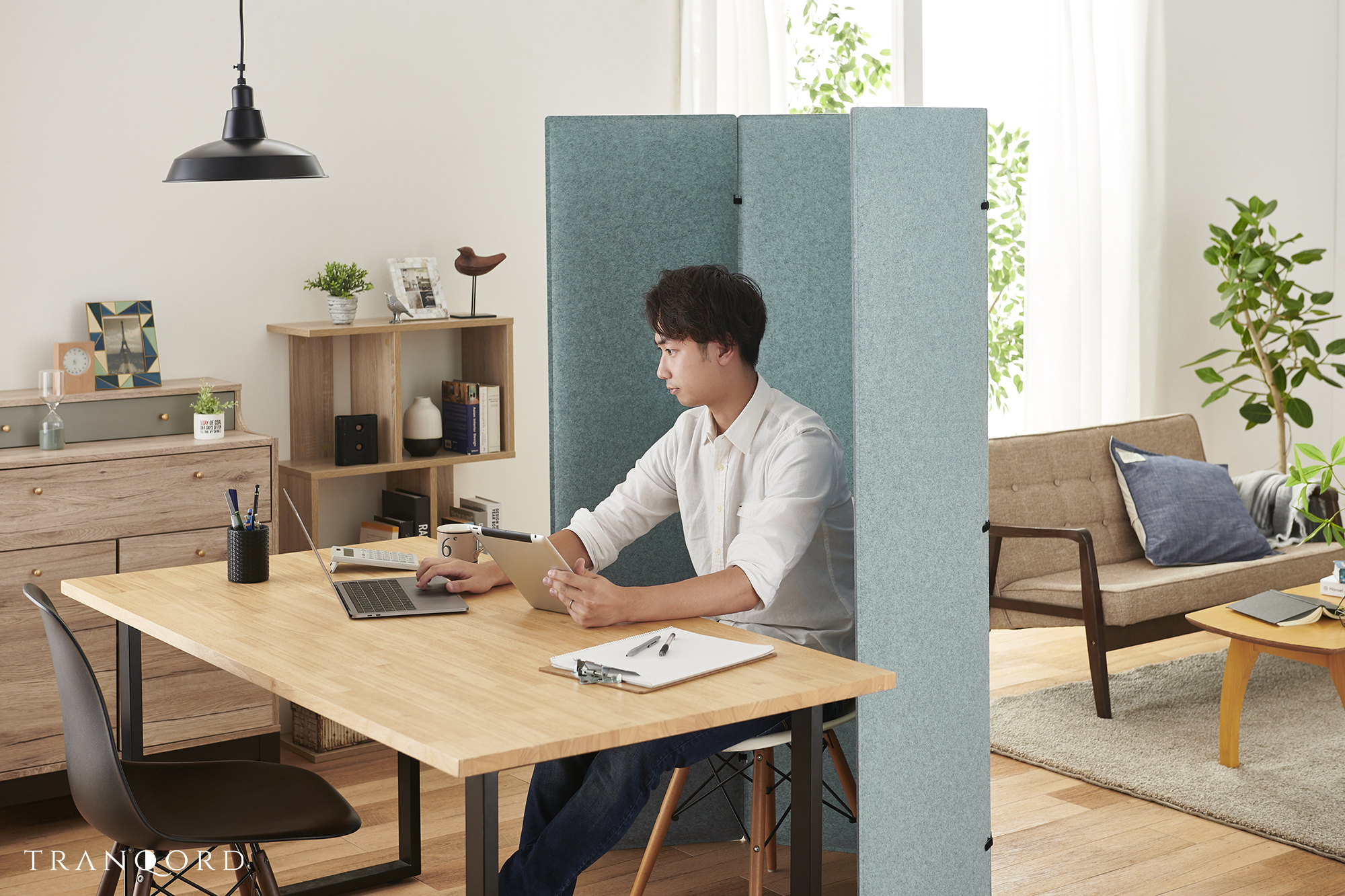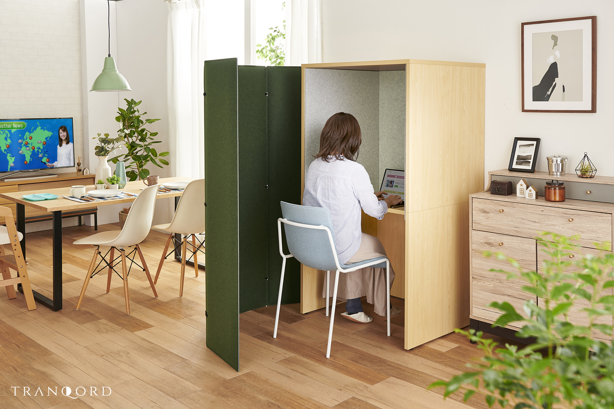 また吸音材を使い音を和らげるので、完全な個室とは違った半個室スペースとなり、家族や周りとのちょどいい距離感・パーソナルスペースを生み出します。表面はフェルト繊維になっているため、ピンでメモなどを掲示しても穴が目立ちません。