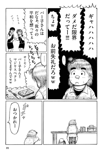 職長の川村と小野が決死の脱出を試みる中、パー子(補修職人/30代なかば)は謎の鳥居で師・火村と再会する。
